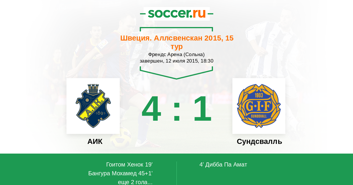 Протокол матча АИК против Сундсвалль