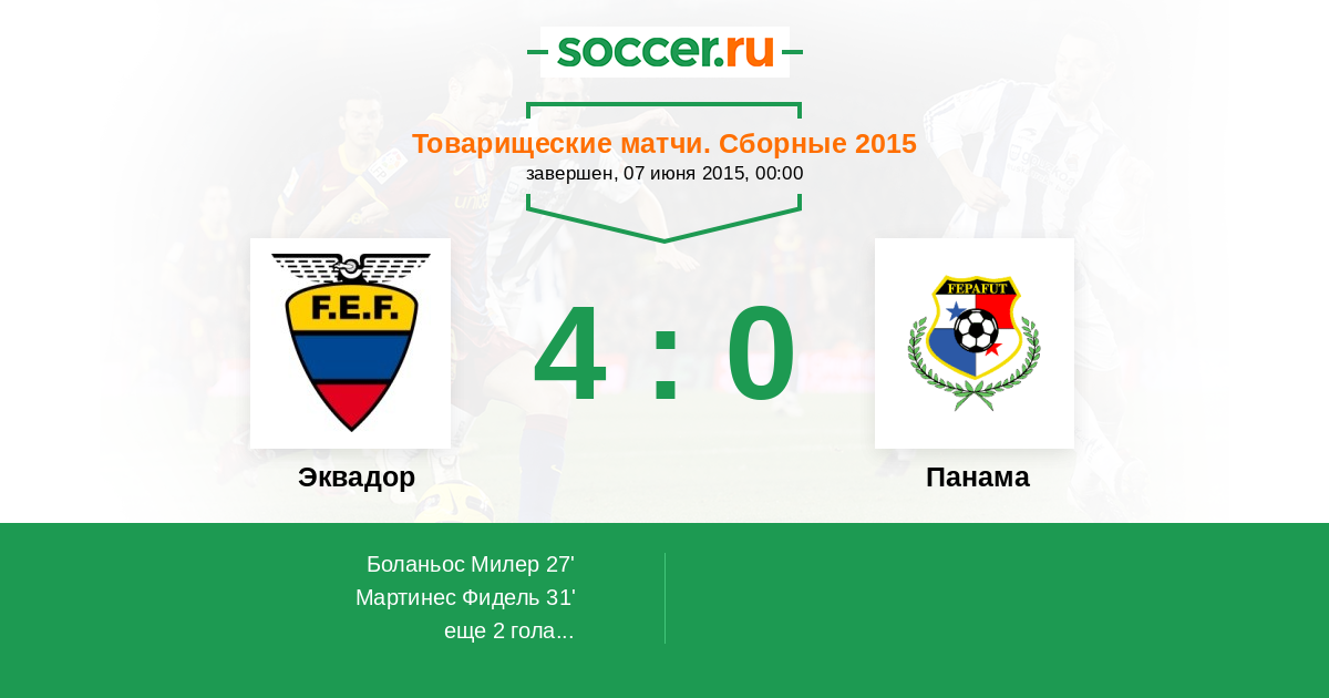 Протокол матча Эквадор против Панама