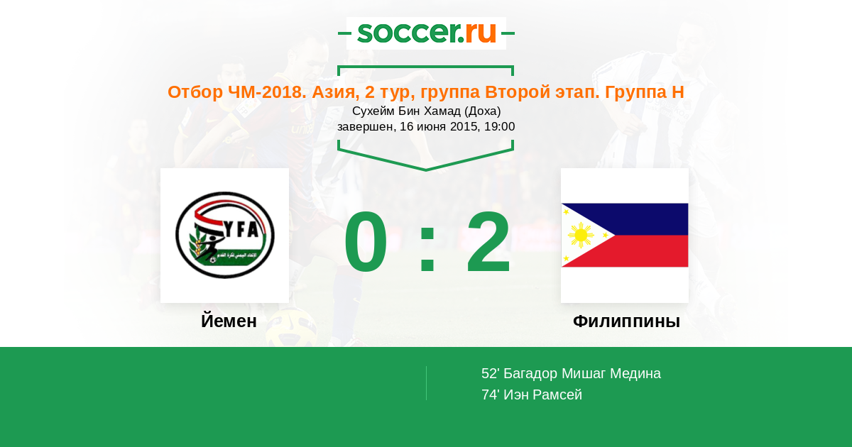 Протокол матча Йемен против Филиппины
