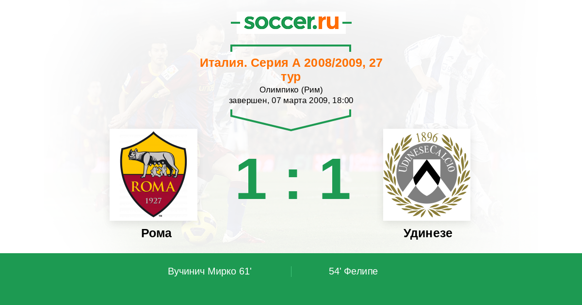 Протокол матча Рома против Удинезе