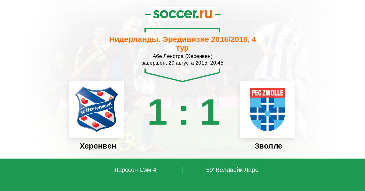 Протокол матча Херенвен против Зволле