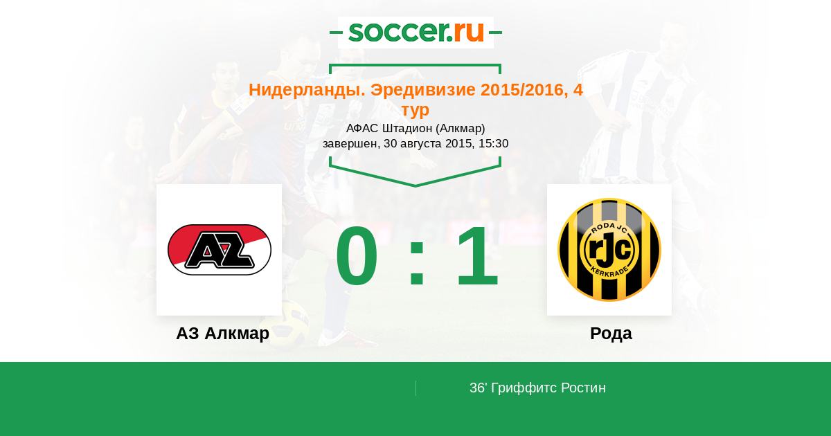 Протокол матча АЗ Алкмар против Рода