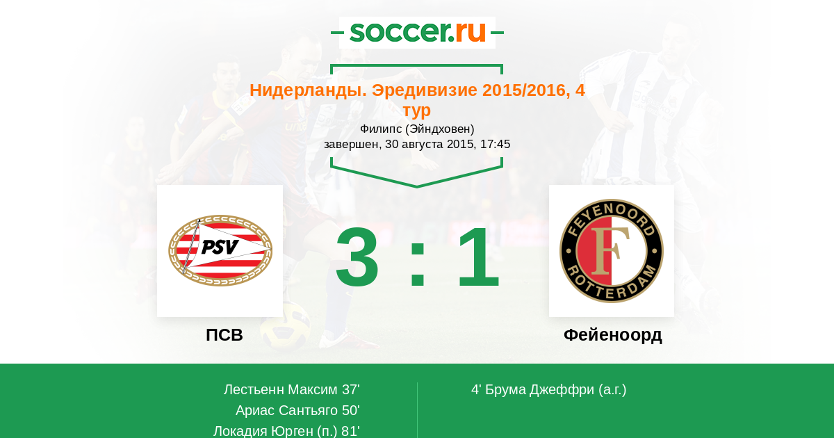Протокол матча ПСВ против Фейеноорд