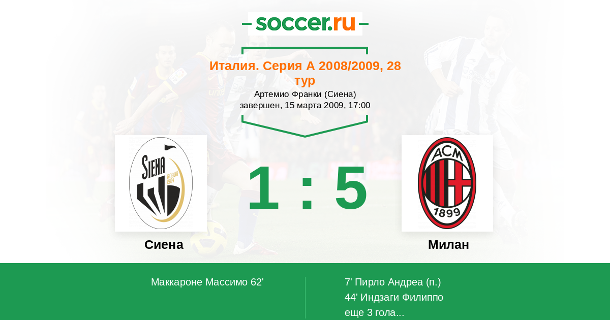 Протокол матча Сиена против Милан