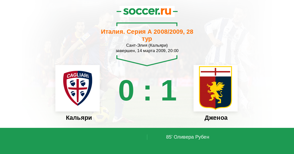 Протокол матча Кальяри против Дженоа