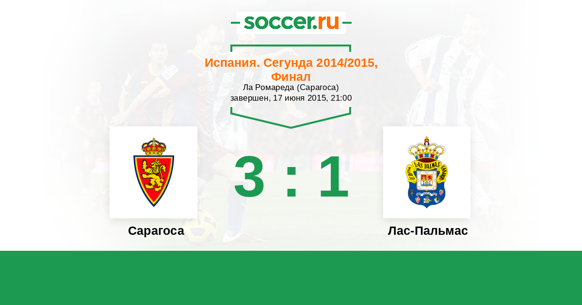 Испания. Сегунда 21.06.2015 Лас-Пальмас Логотип футбольный клуб Лас-Пальмас 2:0 Логотип футбольный клуб Сарагоса Сарагоса