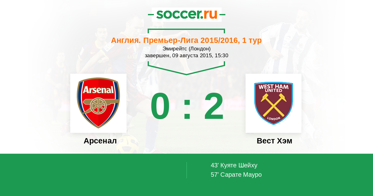 Протокол матча Арсенал против Вест Хэм