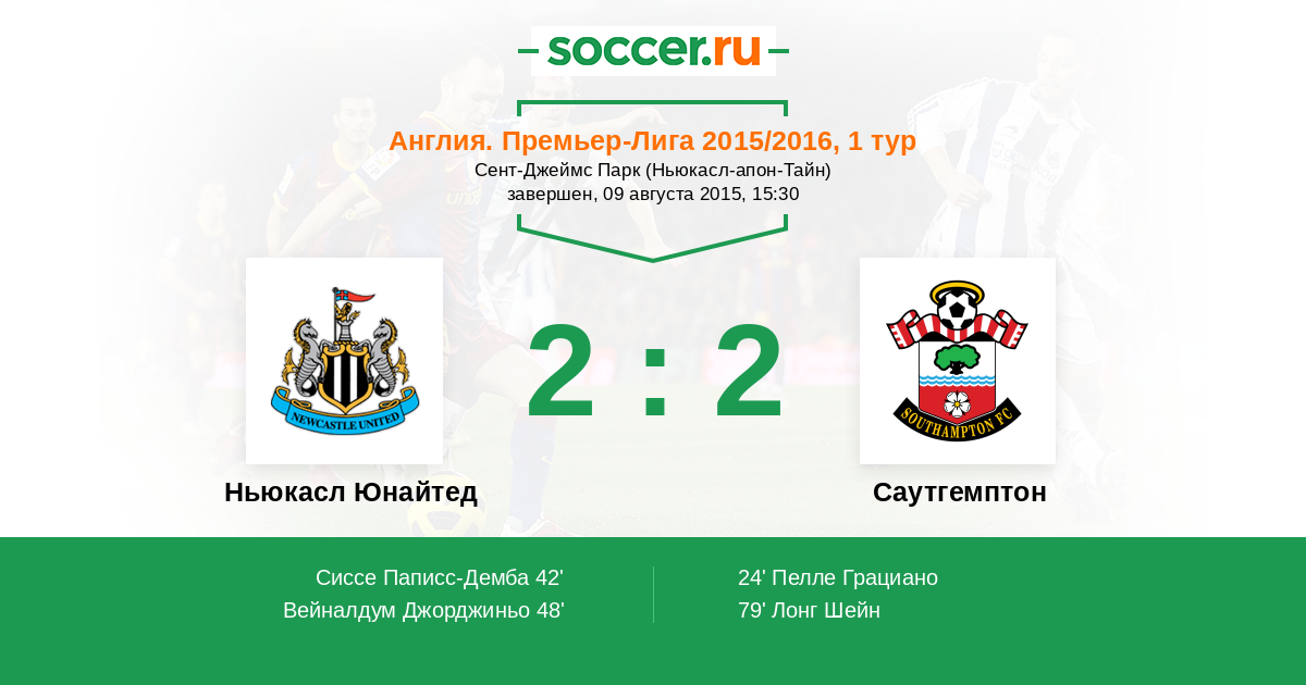 Протокол матча Ньюкасл Юнайтед против Саутгемптон