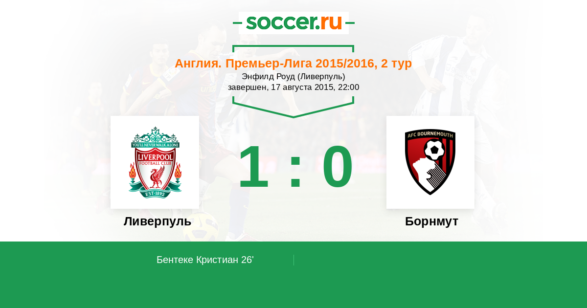 Протокол матча Ливерпуль против Борнмут