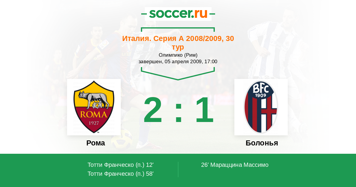 Протокол матча Рома против Болонья