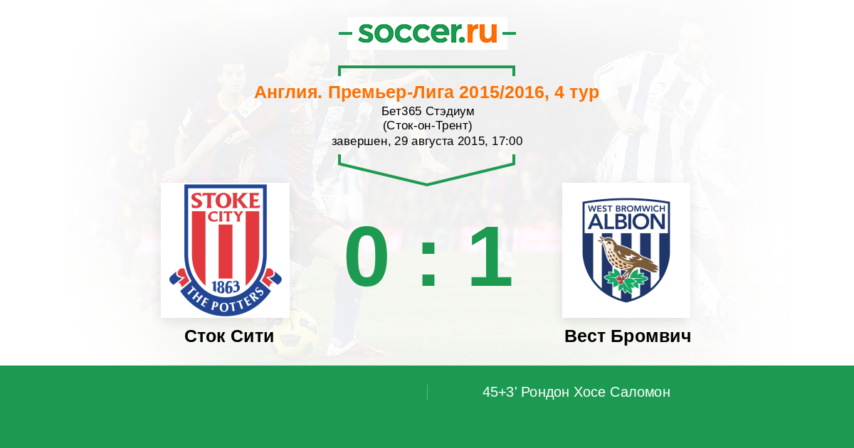 Протокол матча Сток Сити против Вест Бромвич