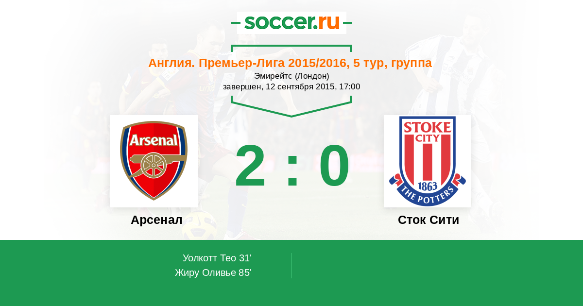 Протокол матча Арсенал против Сток Сити