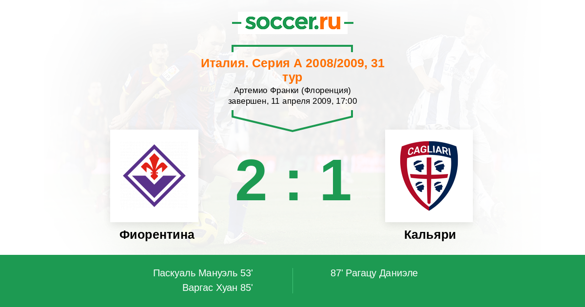Протокол матча Фиорентина против Кальяри