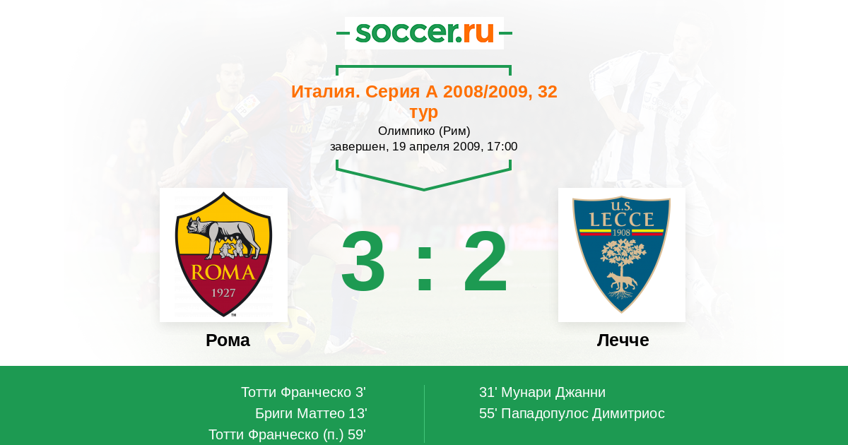 Протокол матча Рома против Лечче