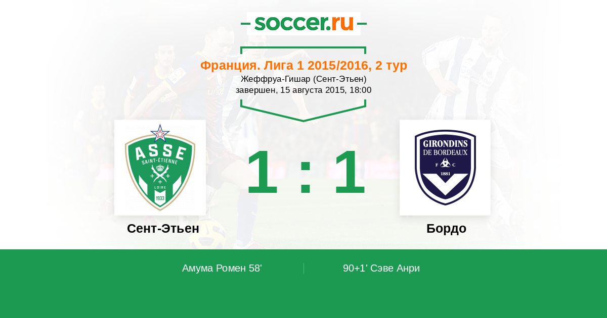58' (1:0) Амума Ромен (21) (Лемуан Фабьен (18))