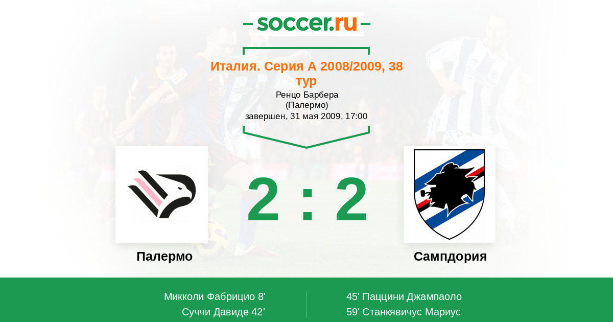 Протокол матча Палермо против Сампдория