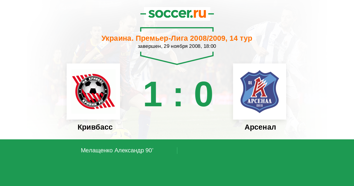 Протокол матча Кривбасс против Арсенал