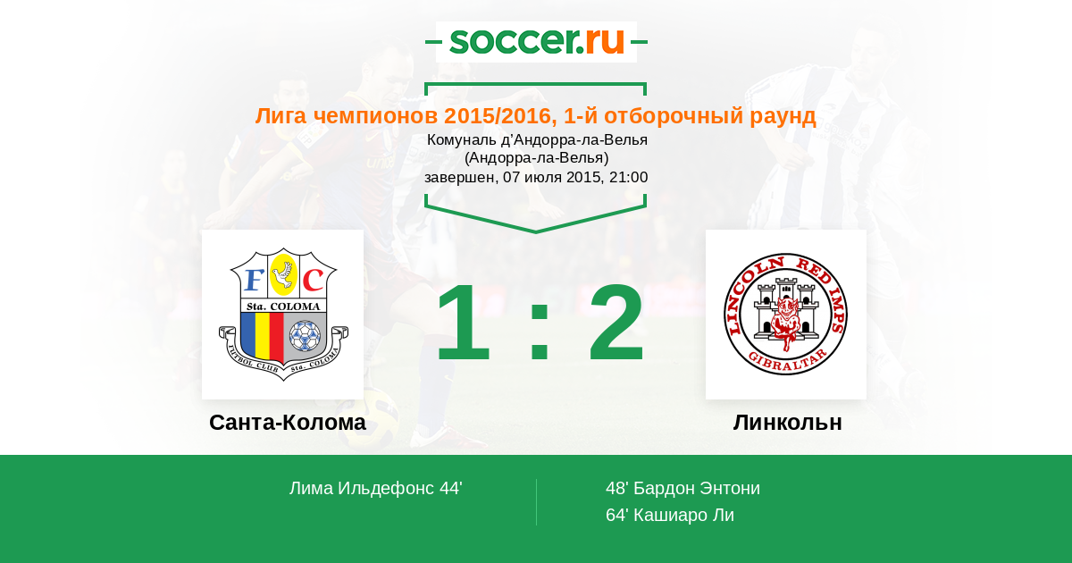 Протокол матча Санта-Колома против Линкольн