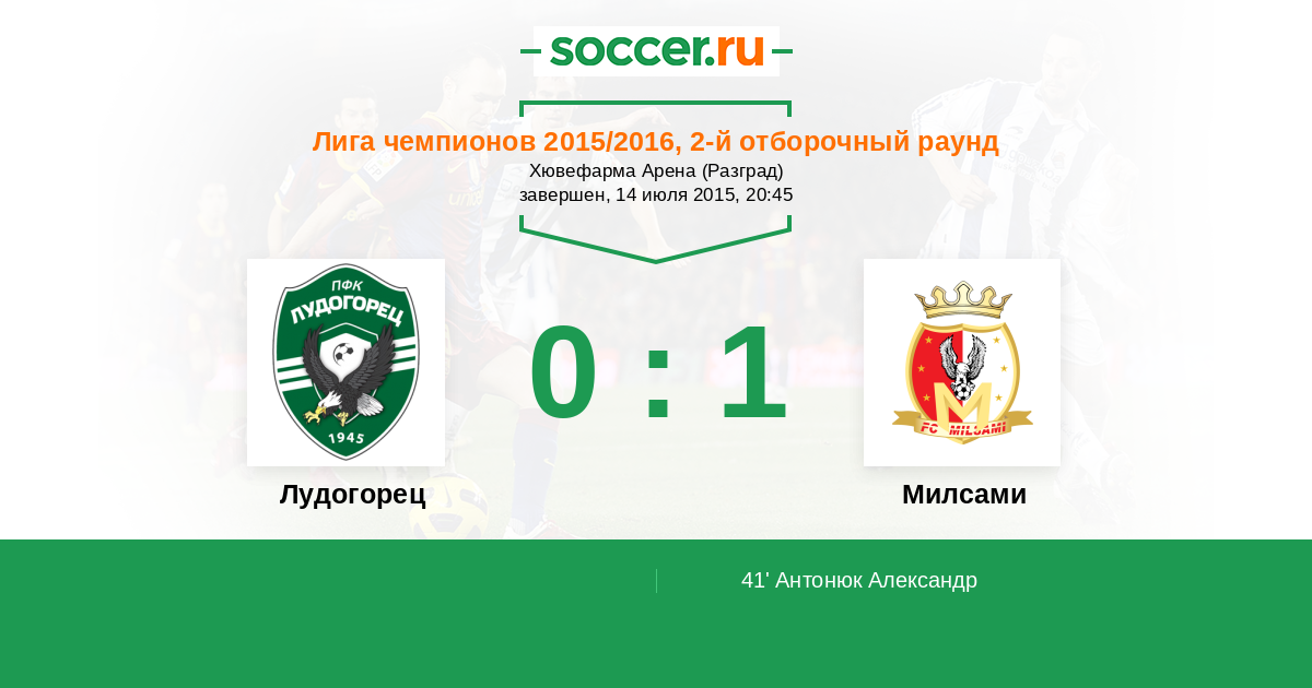 Протокол матча Лудогорец против Милсами