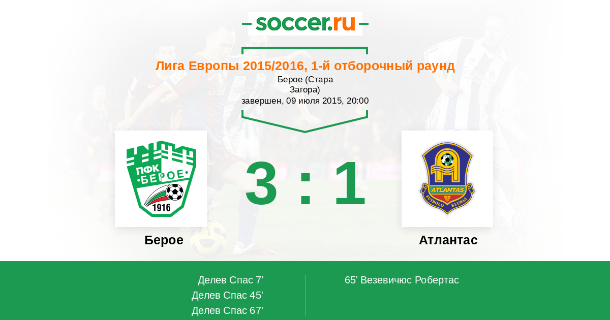 Протокол матча Берое против Атлантас