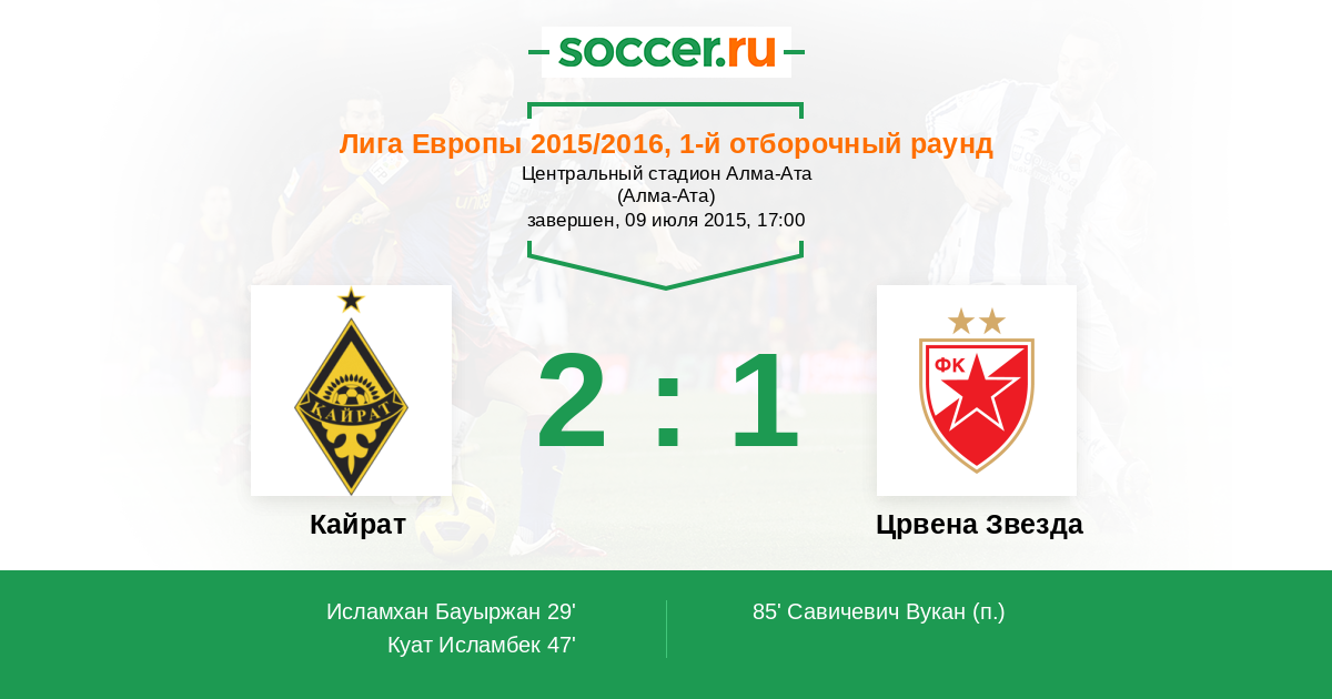 Протокол матча Кайрат против Црвена Звезда
