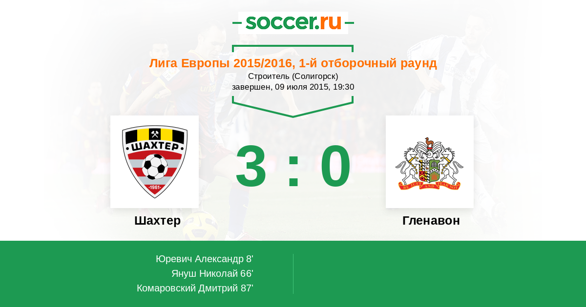 Протокол матча Шахтер против Гленавон