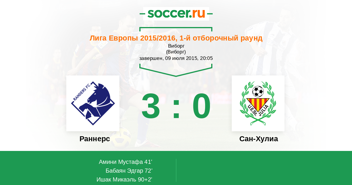 Протокол матча Раннерс против Сан-Хулиа