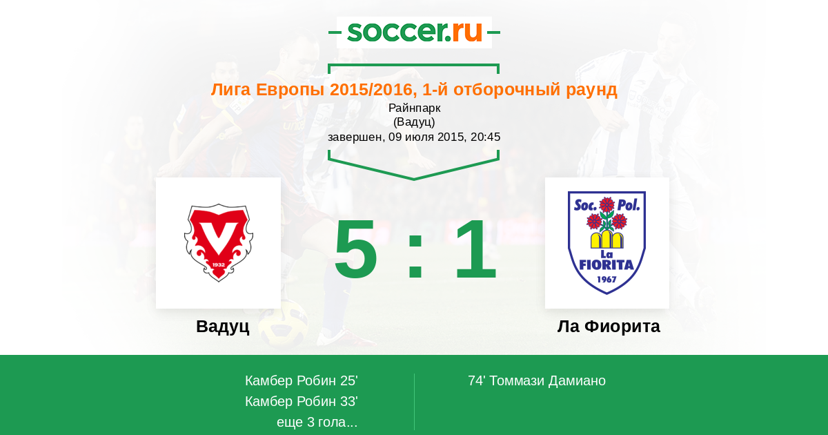Протокол матча Вадуц против Ла Фиорита