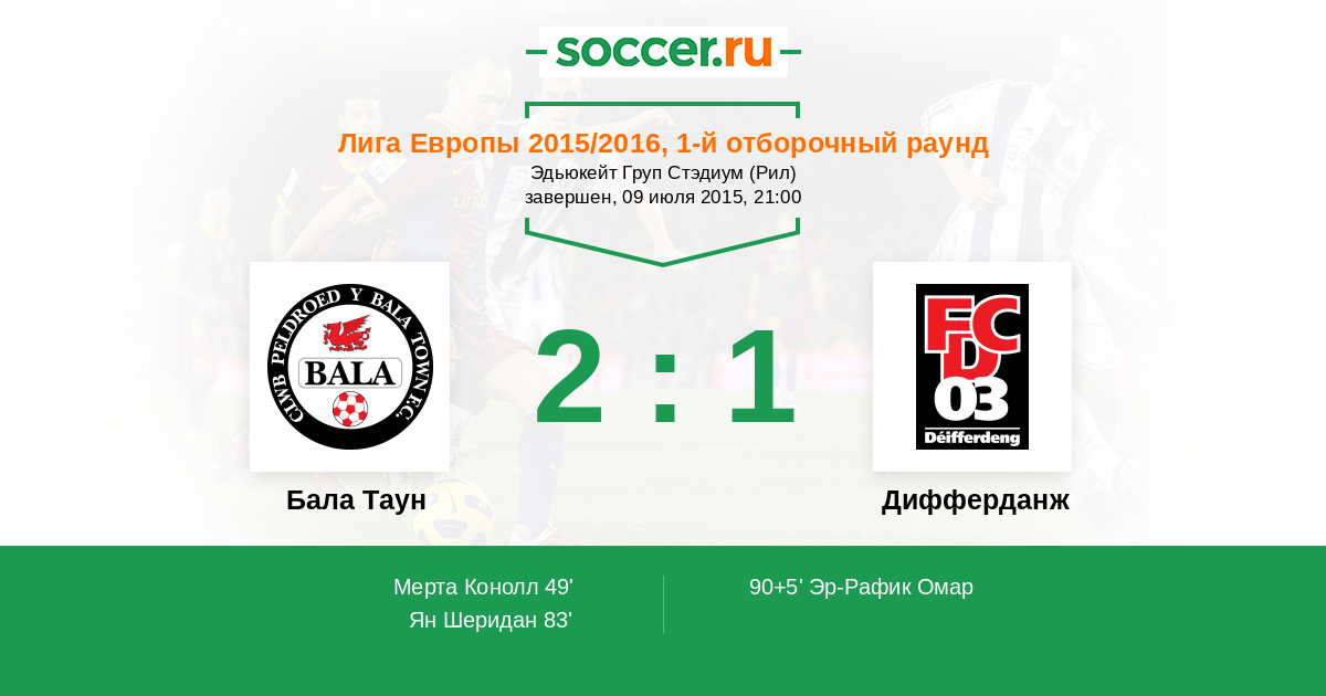 Протокол матча Бала Таун против Дифферданж