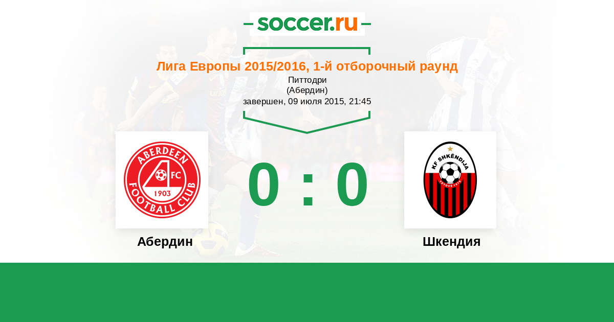 Протокол матча Абердин против Шкендия