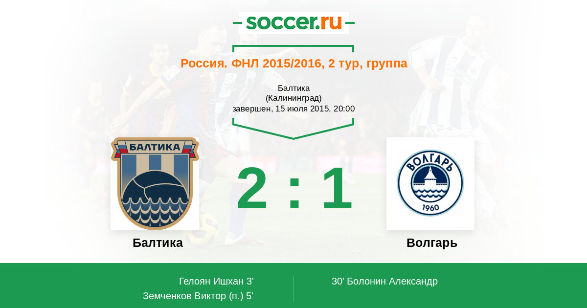 Протокол матча Балтика против Волгарь