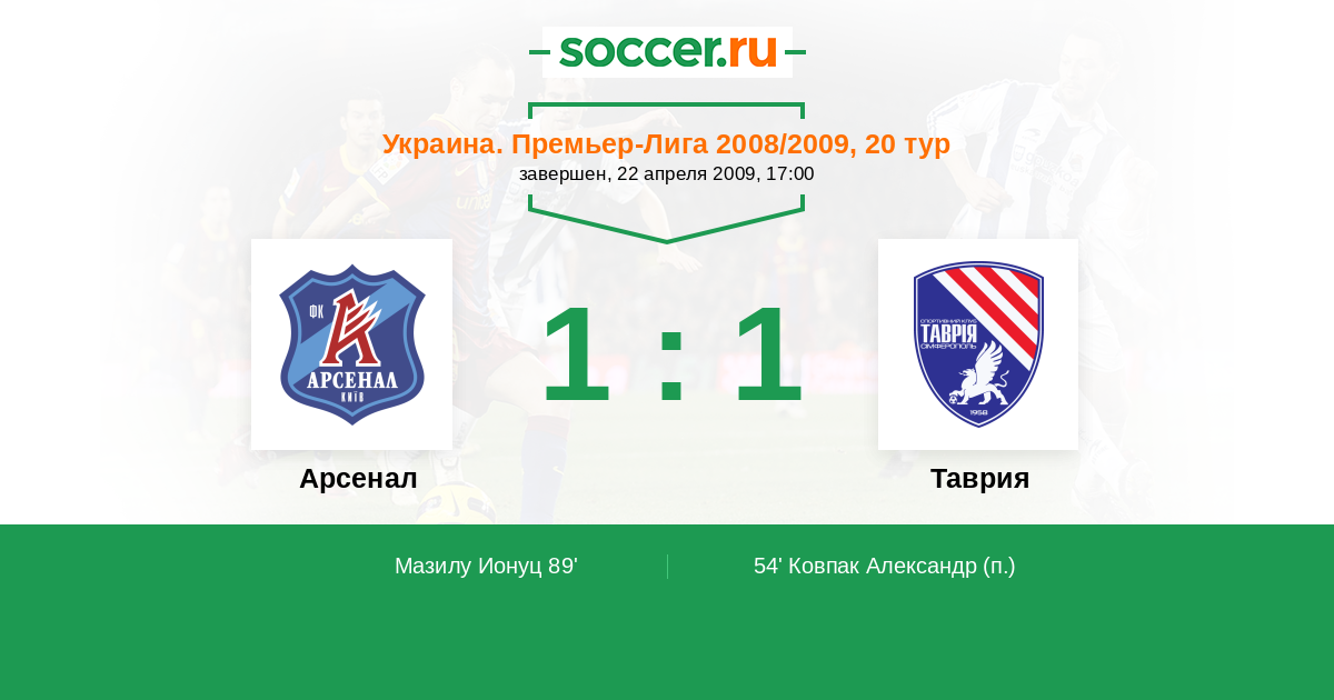 Протокол матча Арсенал против Таврия