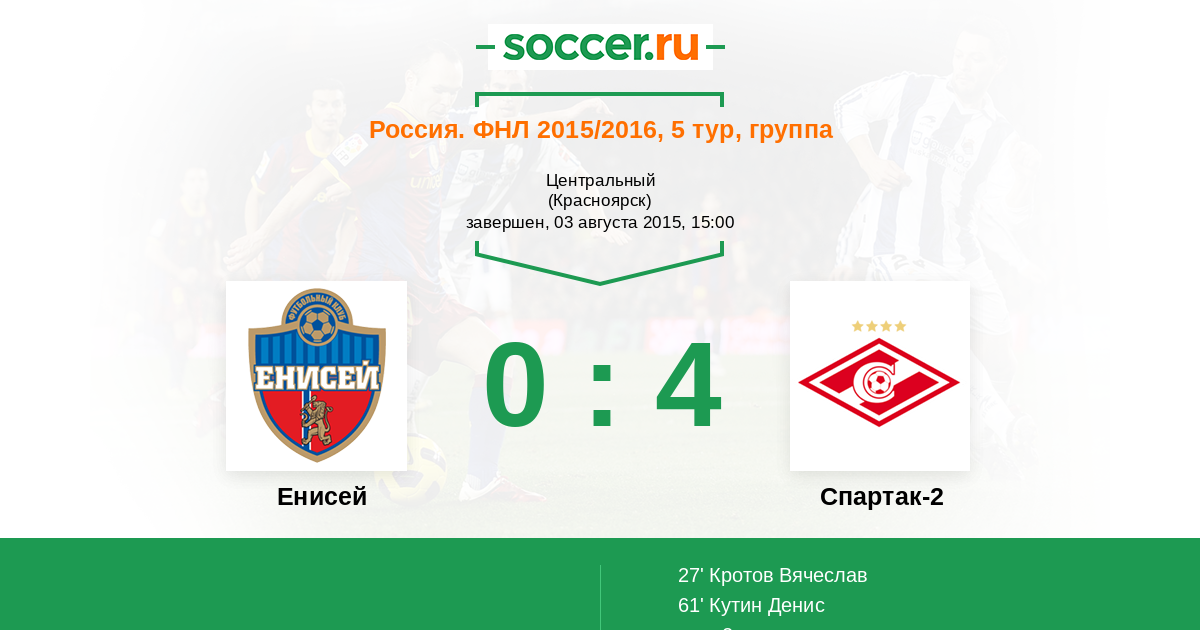 Протокол матча Енисей против Спартак-2