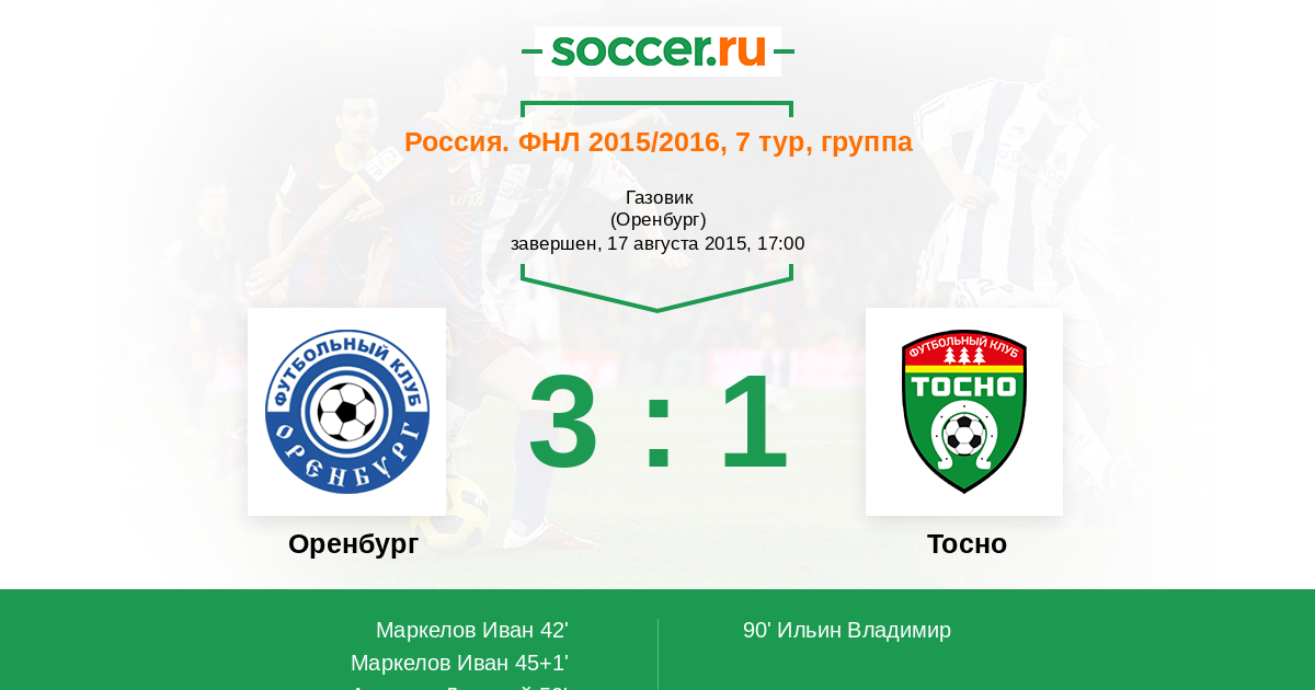 Протокол матча Газовик против Тосно