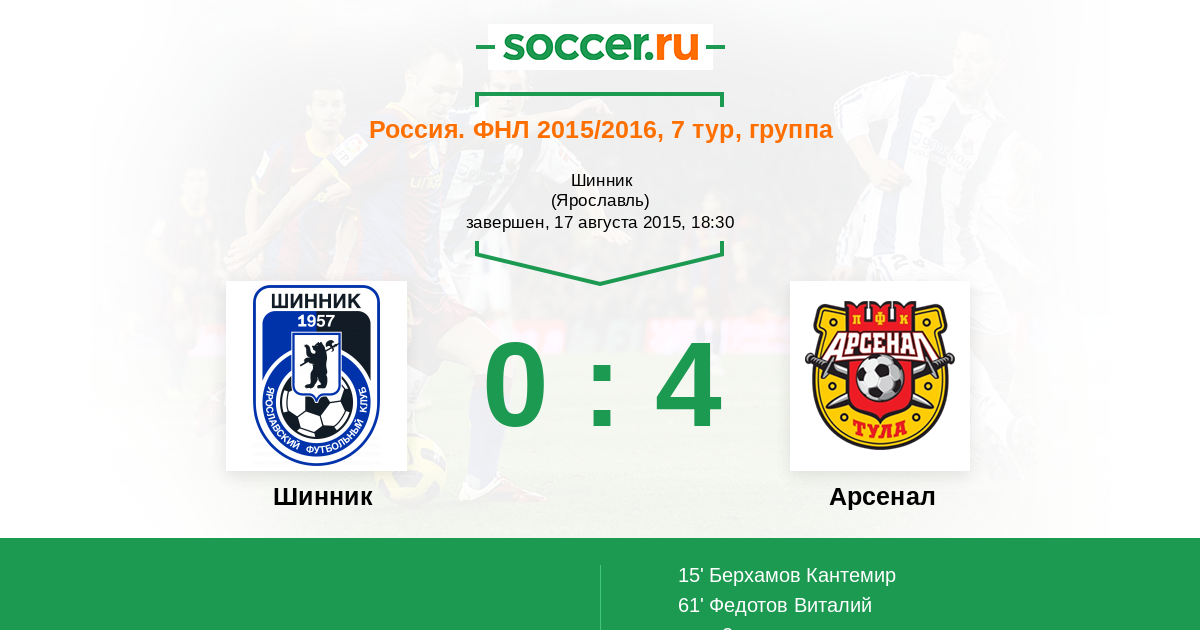 Протокол матча Шинник против Арсенал