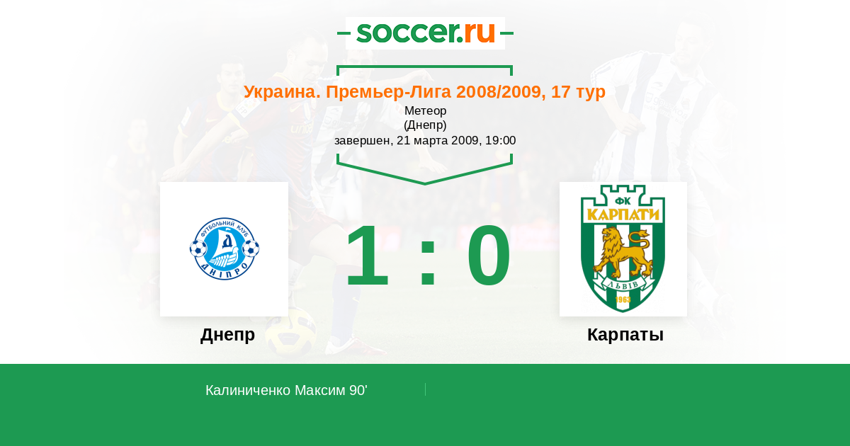 Протокол матча Днепр против Карпаты