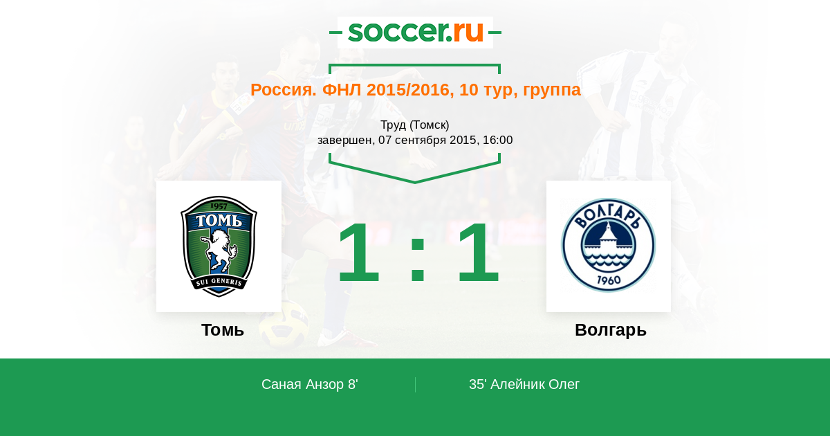 Протокол матча Томь против Волгарь