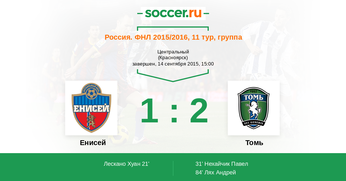 Протокол матча Енисей против Томь