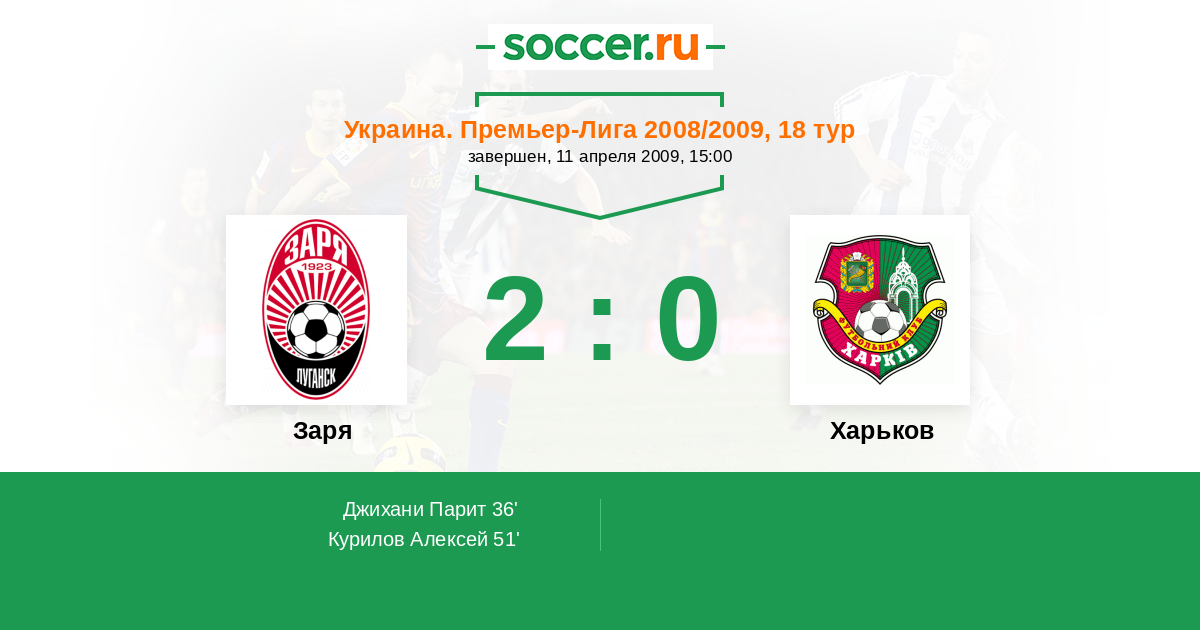 Протокол матча Заря против Харьков