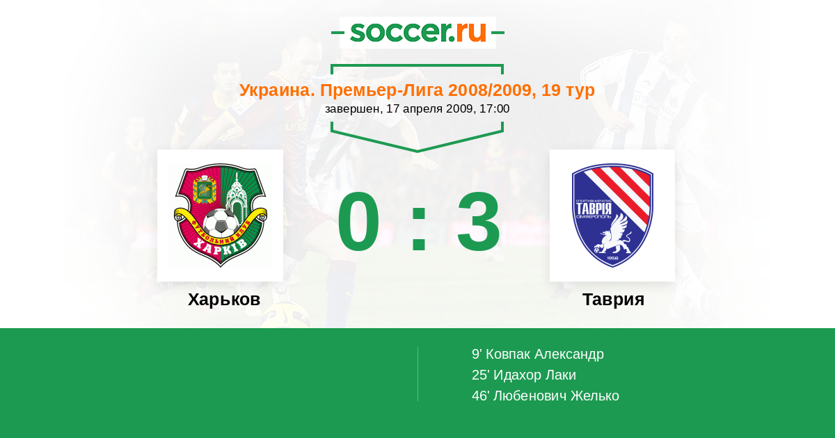 Протокол матча Харьков против Таврия