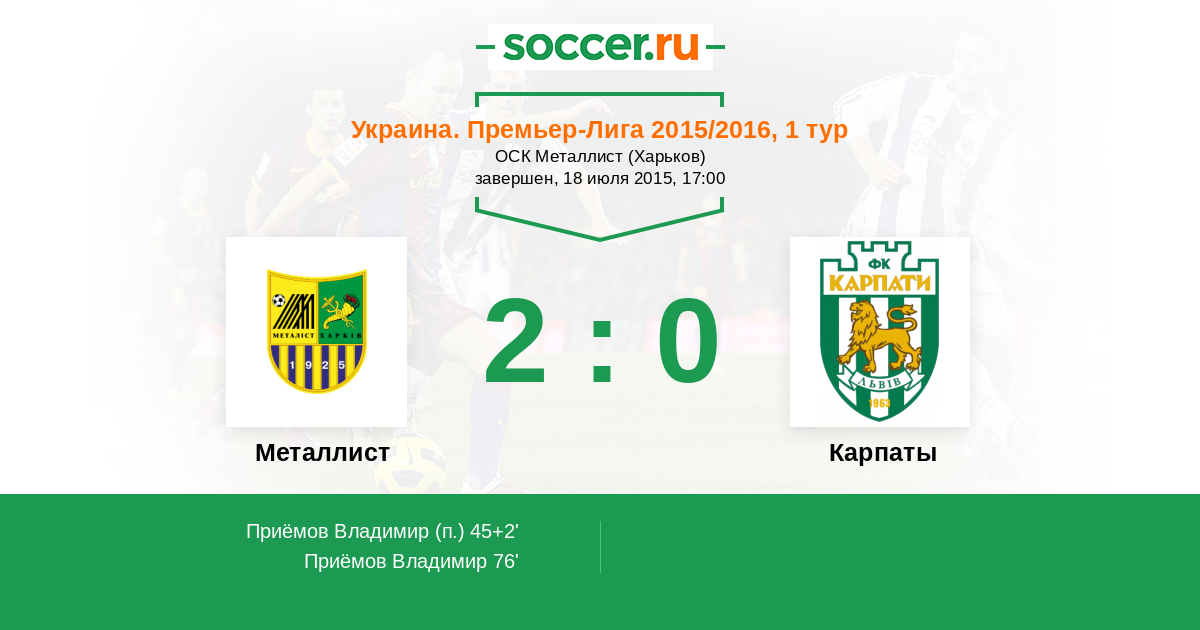Протокол матча Металлист против Карпаты