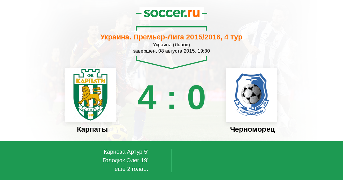 Протокол матча Карпаты против Черноморец