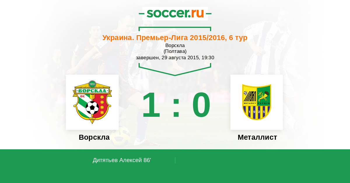 Протокол матча Ворскла против Металлист