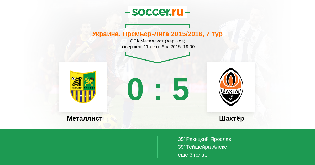 Протокол матча Металлист против Шахтёр