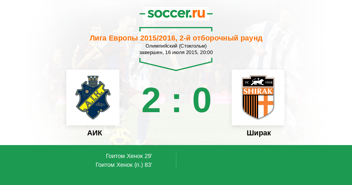 Протокол матча АИК против Ширак