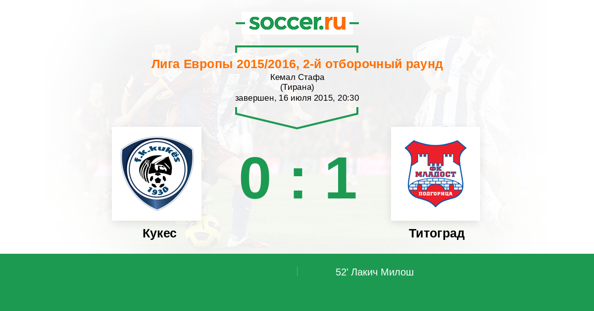 52' (0:1) Лакич Милош (21)