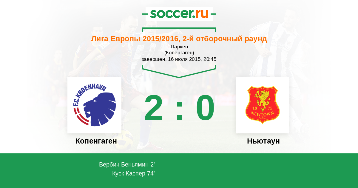 Протокол матча Копенгаген против Ньютаун