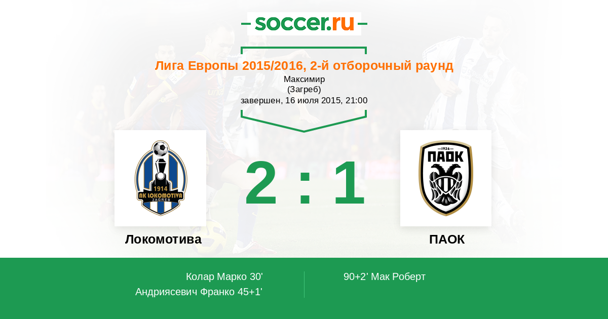 Протокол матча Локомотива против ПАОК