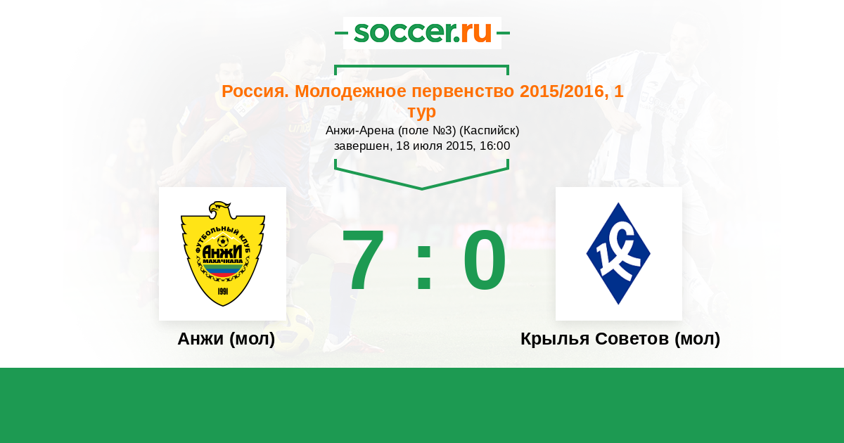История матча Анжи (мол) против Крылья Советов (мол)