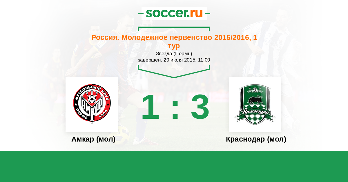 Россия. Премьер-Лига U21 22.09.2014 Амкар (мол) Логотип футбольный клуб Амкар (мол) (Пермь) 3:2 Логотип футбольный клуб Краснодар (мол) Краснодар (мол)